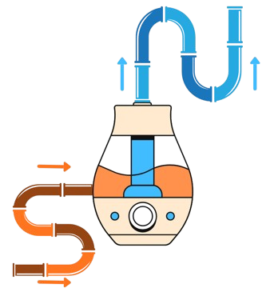 這些水槽在壓機冷卻階段收集熱水,並於下次加熱階段再次使用。